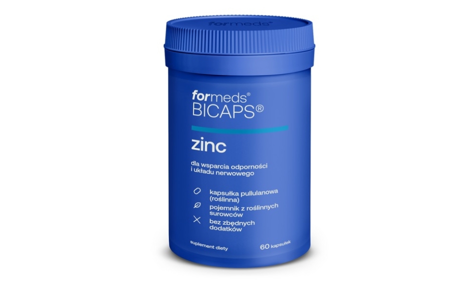BICAPS zinc zawiera połączenie dwóch składników mineralnych: cynku i miedzi, w wysoce przyswajalnych formach cytrynianów. Linia BICAPS to suplementy diety bez zbędnych dodatków zamknięte w pullulanowej kapsułce roślinnej.