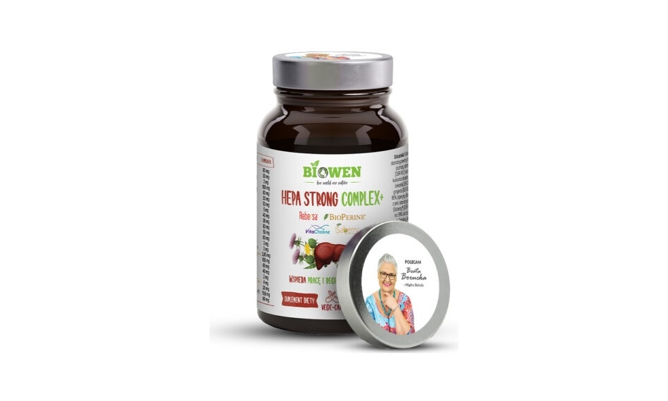 Hepa Strong Complex+ Biowen to suplement diety stworzony z myślą o osobach chcących zadbać o zdrowie i regenerację wątroby oraz wsparcie trawienia. Zawiera aż 14 składników aktywnych, w tym 5 opatentowanych formuł: Panicin, Saberry, VitaCholine, BioPerine i Curcumin C3 Complex. Dzięki wysokim standaryzacjom i synergicznemu działaniu ekstraktów roślinnych, aminokwasów i witamin, suplement kompleksowo wspiera ochronę komórek wątroby, procesy metaboliczne i odporność organizmu