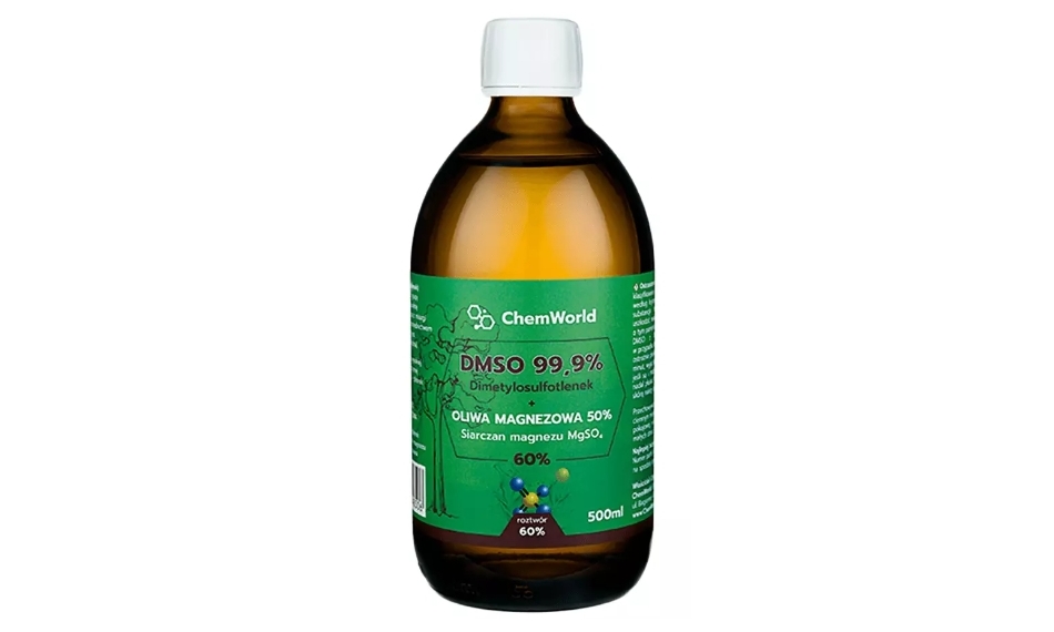 DMSO używane do połączenia z magnezem jest w najczystszej formie farmaceutycznej, prawie bezwonnej, Pharmaceutical Grade to najlepsza jakość DMSO.