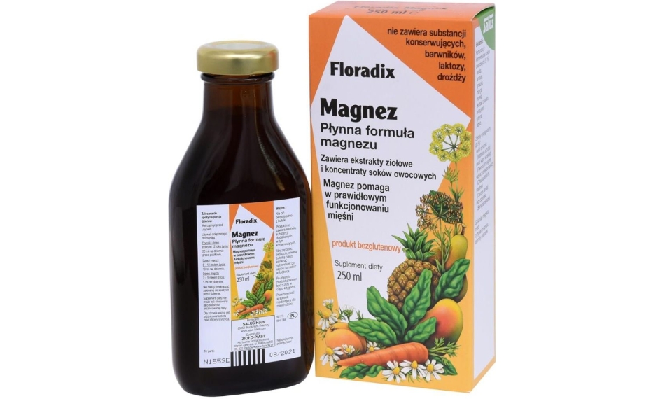 Suplement diety Floradix Magnez to łatwy do spożycia preparat w postaci doustnego płynu. Produkt zapewnia lepsze przyswajanie zawartych w nim substancji odżywczych, niż podobne produkty w tabletkach. Formuła suplementu diety Floradix Magnez opiera się na magnezie, który wspomaga prawidłowe funkcjonowanie mięśni i układu nerwowego. Magnez wpływa też na zachowanie odpowiednich funkcji psychologicznych.