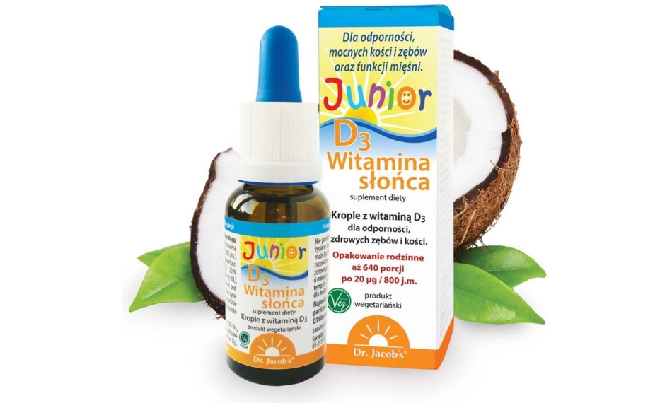 Stosując Witaminę słońca D3 Junior Dr. Jacob’s nie powinno się przyjmować innego produktu z witaminą D3.