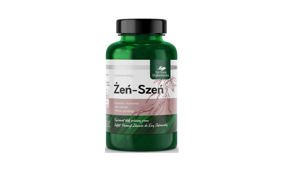 Żeń-Szeń Dr Ewa Dąbrowska to suplement diety zawierający ekstrakt z korzenia Żeń-Szenia. Żeń Szeń to roślina z Dalekiego Wschodu, stosowana w celach leczniczych od nawet 4000 lat. Najcenniejszy w roślinie jest korzeń, nazywany „korzeniem życia”. Stanowi źródło ponad 200 substancji bioaktywnych. Korzeń Żeń-Szenia wykazuje przede wszystkim z korzystne działanie na układ nerwowy, ale lista jego prozdrowotnych właściwości jest znacznie dłuższa. Jego stosowanie zaleca się przede wszystkim w okresach zmniejszonej odporności, rekonwalescencji po chorobie. Jego właściwości cenią również osoby wyczerpane intensywnym trybem życia, przy problemach z potencją oraz osoby w wieku podeszłym.