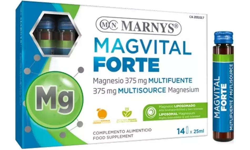 MARNYS® MagVital Forte to ekskluzywne połączenie trzech źródeł magnezu: cytrynianu magnezu, siarczanu magnezu i L-pidolanu magnezu, które zapewniają wysoką biodostępność i dużą ilość pierwiastkowego magnezu dzięki wieloźródłowej formule liposomów.