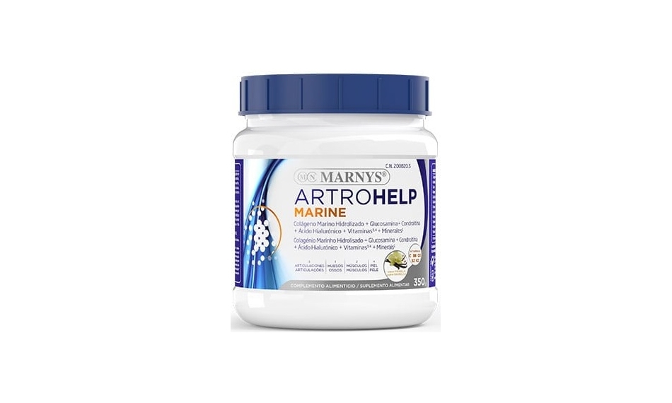 - Artrohelp Marine zawiera 10 g hydrolizowanego kolagenu morskiego, który jest mieszaniną drobnych peptydów kolagenowych o niskiej masie cząsteczkowej (4000 Da), charakteryzujących się dobrą dostępnością.