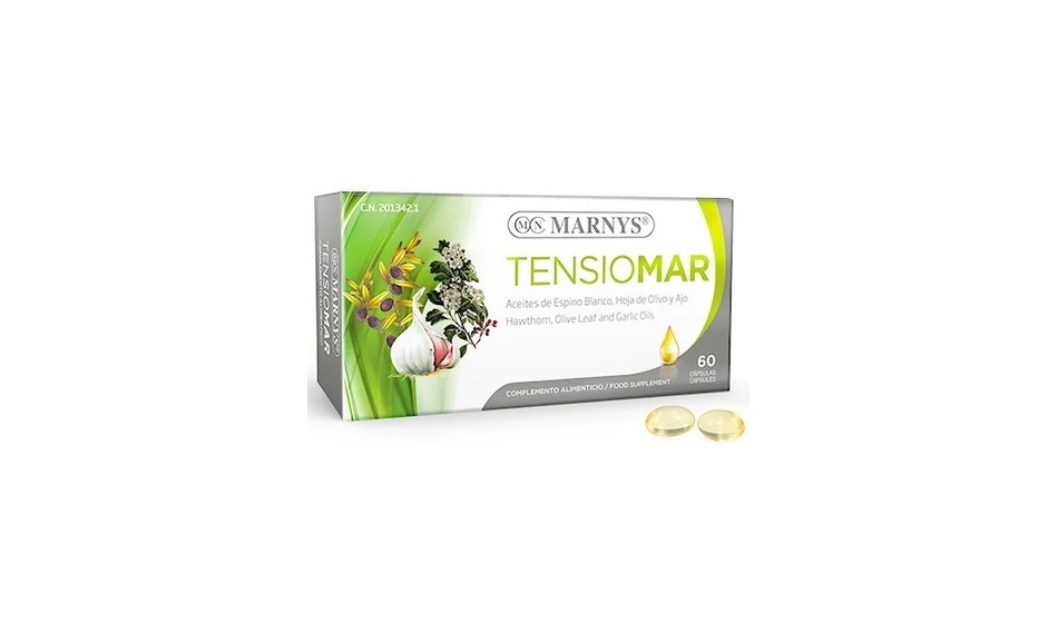 MARNYS® Tensiomar to naturalny suplement diety w postaci miękkich kapsułek, który zawiera głóg, oliwę z oliwek i czosnek, przyczyniający się do prawidłowego funkcjonowania układu sercowo-naczyniowego.