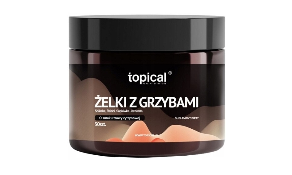 Topical żelki z grzybami Reishi Shiitake Soplówka Jeżowat bez cukru 30sztuk opinie