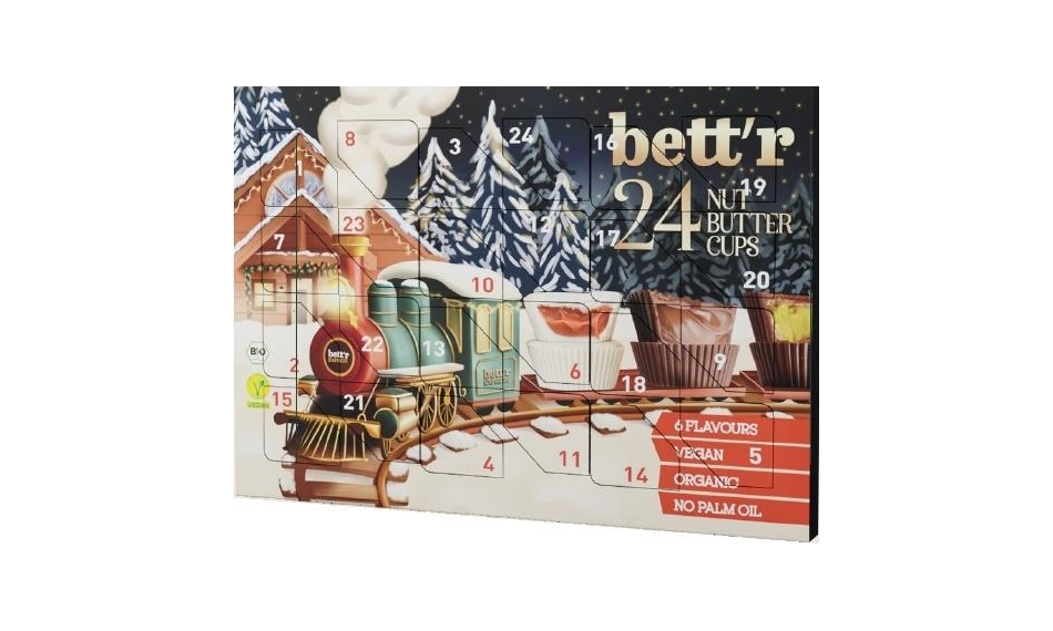 Numer 2,7,13,20: Pralinki z kremem z orzeszków ziemnych. Składniki: prażone ORZESZKI ZIEMNE* (30 %), cukier kokosowy*, masa kakaowa*, tłuszcz kakaowy*, olej shea*, krem kokosowy*, mąka kokosowa*, emulgator: lecytyny (ze słonecznika*), sól. (*certyfikowany składnik ekologiczny)
