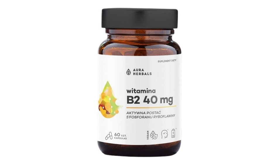 - 40 mg ryboflawiny (witamina B2) w każdej kapsułce