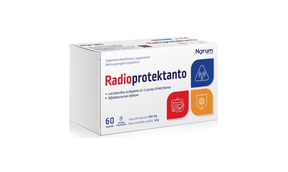 Produkt Radioprotektanto Narum jest wskazany przy potrzebie uzupełnienia flory bakteryjnej jelit o bakterie Lactobacillus Acidophilus, oraz Bifidobacterium bifidum.