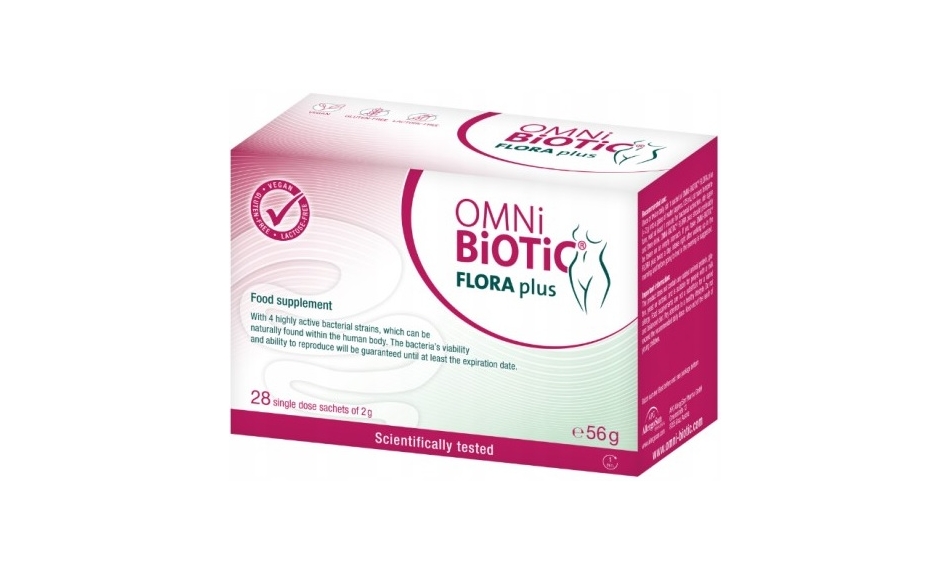 OMNi-BiOTiC® FLORA plus – zawiera 4 wyselekcjonowane, przebadane naukowo i klinicznie szczepy bakteryjne, co najmniej 5 miliardów (5x10?) aktywnych i witalnych mikroorganizmów probiotycznych w 1 porcji (= 2 g) dla prawidłowej kompozycji mikrobioty miejsc intymnych.