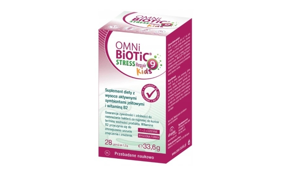 OMNi-BiOTiC® Stress Repair 9 Kids to psychobiotyk dla dzieci w wieku szkolnym, wspierający różnorodność bakteryjną jelit w codziennych wyzwaniach szkolnych. Kompozycja bakteryjna 9 szczepów bakterii probiotycznych bestsellerowego psychobiotyku OMNi-BiOTiC® Stress Repair 9