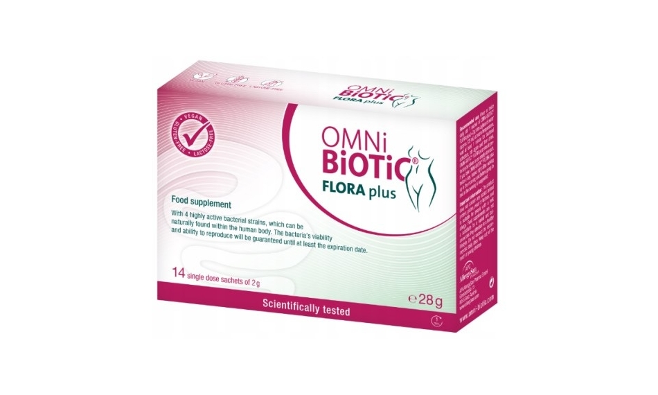 OMNi-BiOTiC® FLORA plus – zawiera 4 wyselekcjonowane, przebadane naukowo i klinicznie szczepy bakteryjne, co najmniej 5 miliardów (5x10?) aktywnych i witalnych mikroorganizmów probiotycznych w 1 porcji (= 2 g) dla prawidłowej kompozycji mikrobioty miejsc intymnych.
