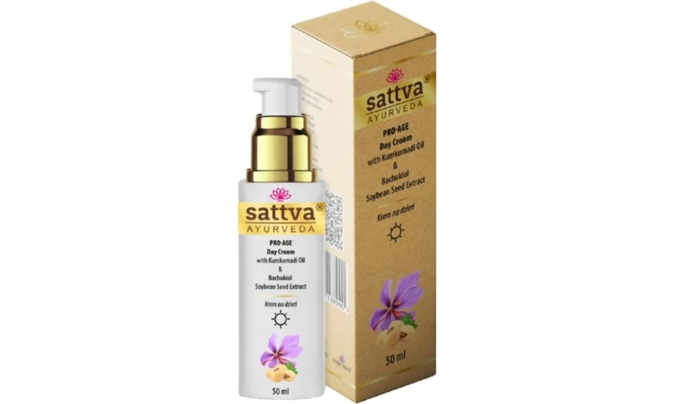 Z olejkiem kumkumadi, bakuchiolem, ekstraktem z nasion soi.