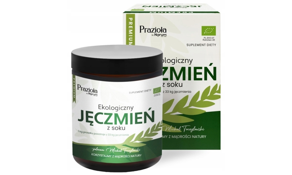 Ekologiczny jęczmień z soku powstaje w procesie bioaktywnej dehydratacji. Jest to delikatne suszenie soku z liści młodego ekologicznego jęczmienia w niskiej temperaturze, bez dostępu tlenu, co pozwala zachować wysokie stężenie substancji prozdrowotnych takich jak witaminy: beta-karoten, tiamina, ryboflawina, niacyna, kwas pantotenowy, witamina B6, biotyna, kwas foliowy, witamina B12, witamina C, witamina E, witamina K oraz składniki mineralne: żelazo, magnez, sód, potas, fosfor, miedź, mangan, chrom, cynk, selen, jod.
