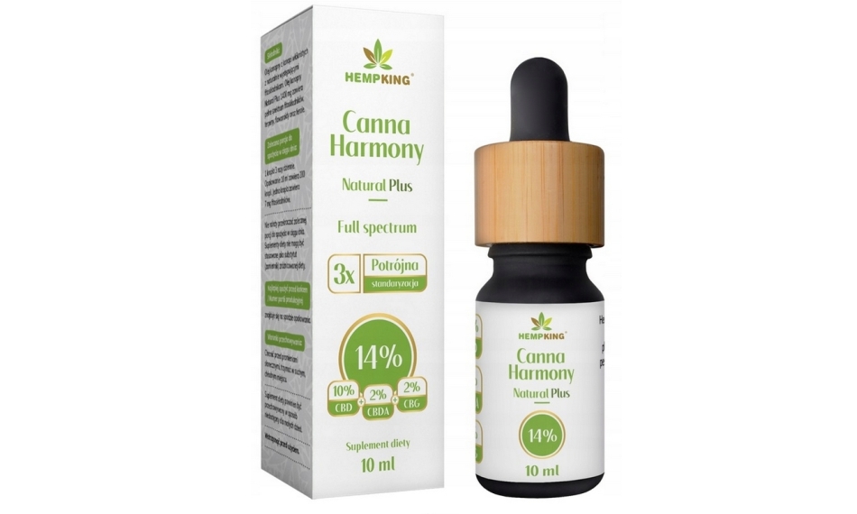 Olej CBD Canna Harmony 14% (10% CBD, 2% CBDA, 2% CBG) to wysokiej jakości olej konopny, pozyskiwany z roślin konopi siewnych rosnących na najczystszych terenach naszego kraju. Pola oddalone od zgiełku ruchliwych dróg i blisko krystalicznie czystego strumienia, są porośnięte konopiami o wysokościach sięgających aż trzy metry. Dzięki promieniom słonecznym, liście i kwiaty tych roślin wytwarzają harmonijną kombinację naturalnych fitoskładników.
