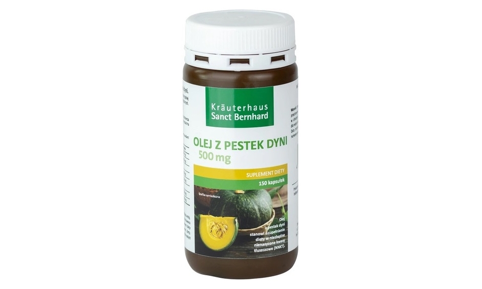 Każda kapsułka zawiera 500 mg czystego oleju z pestek dojrzałych dyni.