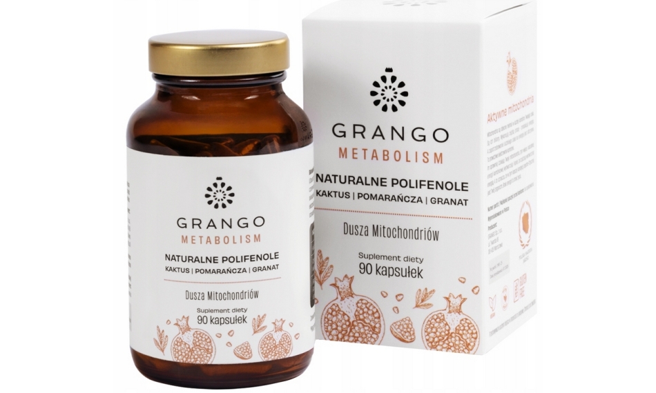 GRANGO® METABOLISM to nutraceutyk pochodzenia roślinnego – ekstrakt ze skórki owoców granatu (Punica granatum L.) standaryzowany na 40% punikalaginy, z kaktusa figowego (Opuntia ficusindica) DER 20:1, czerwonej pomarańczy (Citrus sinensis) DER 20:1.