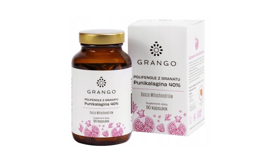 GRANGO® to nutraceutyk pochodzenia roślinnego – ekstrakt ze skórki owoców granatu (Punica granatum L.) standaryzowany na 40% punikalaginy. GRANGO® wspiera pracę mitochondriów. Sprawne mitochondria przekładają się m.in. na: Lepszą kondycję fizyczną i psychiczną Sprawniejszy układ odpornościowy Sprawniejszą regenerację komórek Wolniejsze starzenie się organizmu GRANGO® jest szczególnie polecany, gdy: często odczuwasz przemęczenie i spadek formy czujesz, że twój organizm jest osłabiony chcesz mieć więcej energii i poprawić swoje samopoczucie chcesz wesprzeć procesy energetyczne na poziomie komórkowym chcesz wspierać pracę swoich mięśni chcesz wspierać pracę swojego mózgu chcesz zwiększyć poziom witalności chcesz chronić organizm przed stresem oksydacyjnym chcesz złagodzić objawy stresu oksydacyjnego chcesz wspierać swoją kondycję psychiczną chcesz zachować dobrą kondycję fizyczną na lata