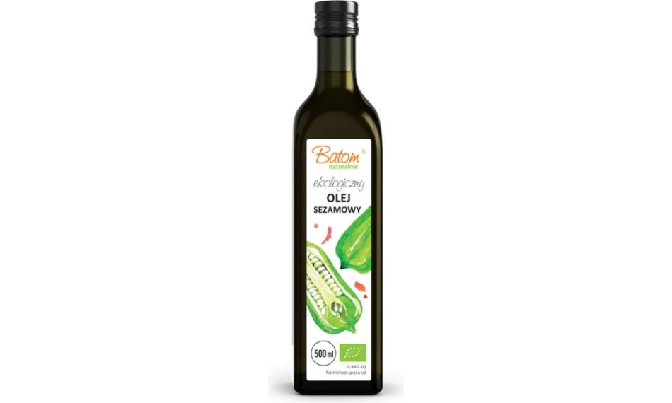 Olej sezamowy otrzymywany w procesie tłoczenia na zimno ekologicznych nasion sezamu. Najlepszy do stosowania na surowo jako dodatek do surówek i sałatek. Oleju można także używać do gotowania, pieczenia i smażenia: zalecana maksymalna temperatura to 180 °C.