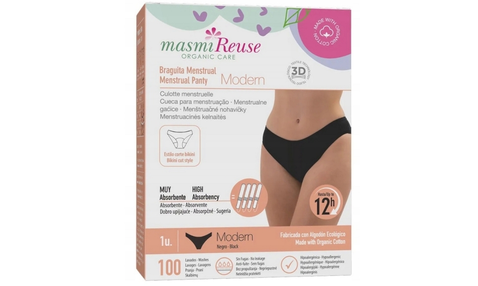 Przy stosowaniu się do zaleceń producenta dotyczących prania i suszenia bielizna menstruacyjna Masmi zachowa swoje właściwości nawet do 400 prań! Artykuły higieniczne wielorazowego użytku zapewniają bezpieczeństwo, wysoką chłonność, pełną swobodę ruchów, duży komfort i jednocześnie są bardzo ekonomiczne.