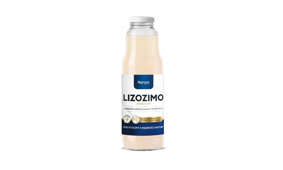 Narum Lozimo 750 ml Lizozimo to fermentowany wysokobiałkowy suplement diety zawierający białka mleczne Lactobacillus acidophilus szczep Er-2 317/402 Narine oraz magnez i wapń.