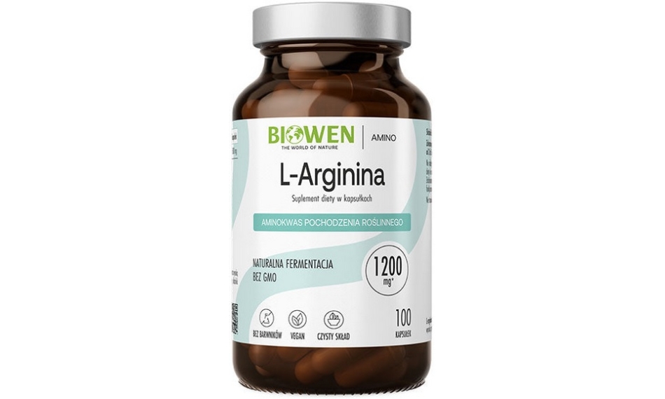 L-Arginina Biowen to suplement diety zawierający 600 mg l-argininy w kapsułce roślinnej, odpowiedni dla wegan i wegetarian. Porcja to 1200 mg. Arginina to aminokwas warunkowo niezbędny – organizm wytwarza go sam, ale w sytuacjach zwiększonego zapotrzebowania (intensywny wysiłek fizyczny i psychiczny, stres, duże obciążenia) jego naturalna produkcja może być niewystarczająca. Dotyczy to szczególnie osób aktywnych i starszych. Arginina bierze udział w tworzeniu tlenku azotu.
