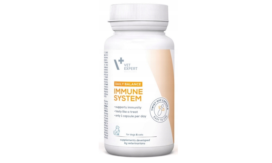 Preparat wspomagający odporność u psów i kotów. Unikatowa kapsułka Twist Off gwarantuje wysoką smakowitość i łatwość podania.