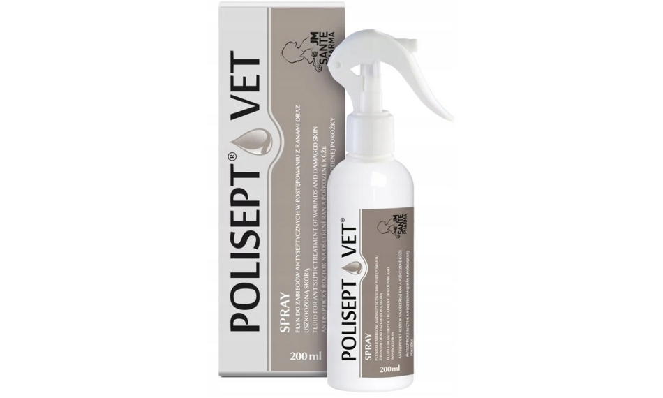 POLISEPT VET® SPRAY to specjalistyczny preparat w formie izotonicznego płynu, przeznaczony do codziennej pielęgnacji i dezynfekcji ran u psów i kotów. Dzięki wygodnej aplikacji w sprayu pozwala szybko oczyścić ranę i zapewnić jej właściwe warunki do gojenia. Preparat działa przeciwbakteryjnie, przeciwzapalnie i przeciwbólowo, a przy tym jest doskonale tolerowany przez tkanki, dlatego może być stosowany nawet w przypadku wrażliwych i trudno gojących się ran.