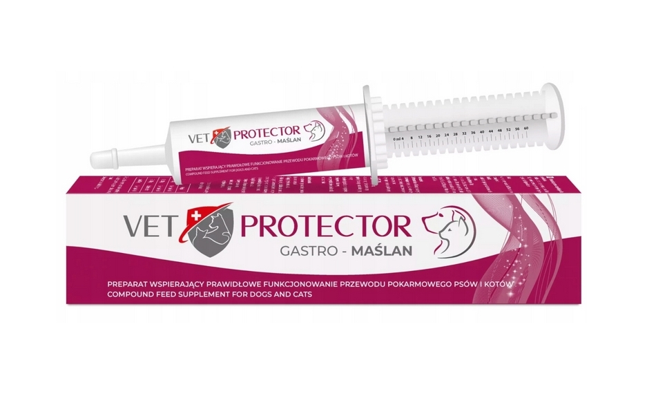 VET PROTECTOR® GASTRO – MAŚLAN to specjalistyczny preparat w postaci pasty, zawierający maślan sodu poddany mikrootoczkowaniu. Dzięki tej technologii kwas masłowy dociera bezpośrednio do jelita grubego, gdzie pełni kluczową funkcję – jest głównym źródłem energii dla komórek nabłonka jelitowego. Preparat wspiera regenerację jelit, łagodzi podrażnienia i wspomaga odbudowę kosmków jelitowych, przyczyniając się do poprawy wchłaniania składników odżywczych.