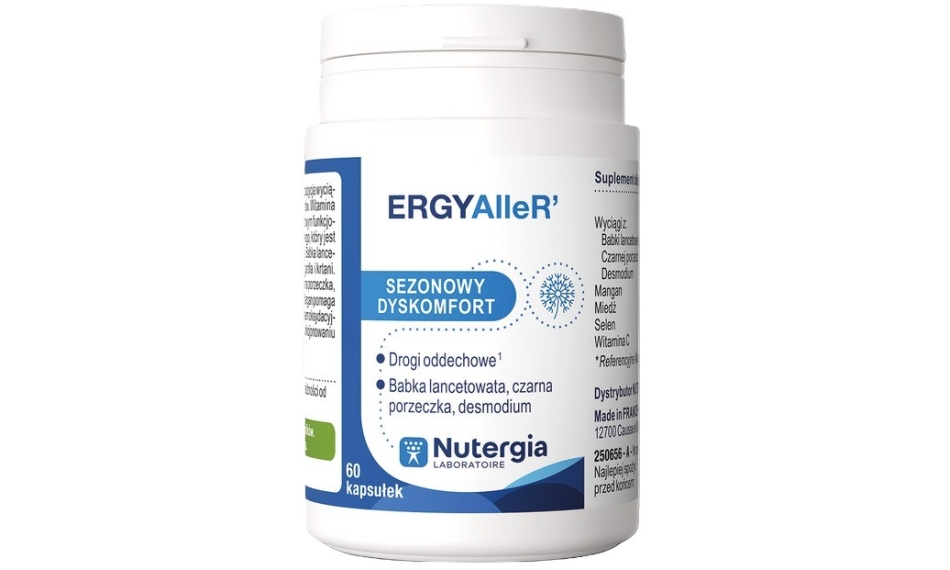 ERGYAlleR’ to wyjątkowa kompozycja wyciągów roślinnych i mikroelementów. Witamina C i miedź pomagają w prawidłowym funkcjonowaniu układu odpornościowego, który jest obciążony szczególnie wiosną. Babka lancetowata łagodzi podrażnienia gardła i krtani. Skład uzupełniają czarna porzeczka, desmodium a także mangan, który pomaga w ochronie komórek przedz stresem oksydacyjnym oraz selen, który pomaga w prawidłowym funkcjonowaniu układu odpornościowego.