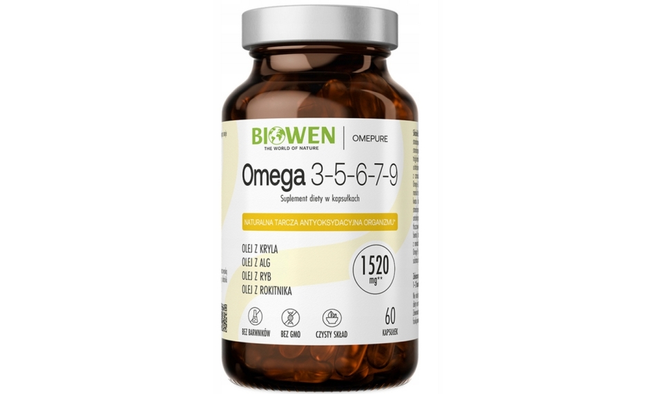 - W składzie znajdują się m.in. olej rybi dostarczający EPA i DHA, DHA z mikroalg Schizochytrium sp., olej z kryla antarktycznego będący źródłem fosfolipidów oraz oleje roślinne, takie jak rokitnik, czarnuszka, wiesiołek i awokado. Formułę uzupełnia ekstrakt z owoców granatu zawierający kwas punikowy (omega-5) oraz naturalna witamina E.
