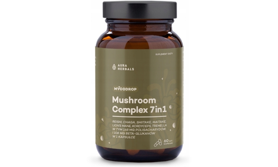 Dlaczego warto wybrać Mycodrop, Mushroom Complex 7 w 1 w kapsułkach: - aż 7 starannie dobranych grzybów funkcjonalnych;