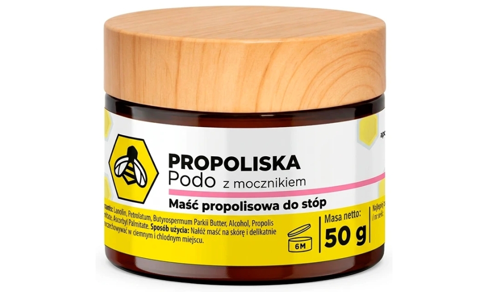Propoliska Podo to połączenie niezwykłych właściwości ekstraktu z propolisu z mocznikiem. Mocznik ma działanie antyseptyczne, złuszczające oraz regenerujące dzięki czemu ma zdolność do usuwania martwych komórek naskórka, przyspieszając regenerację skóry pięt.