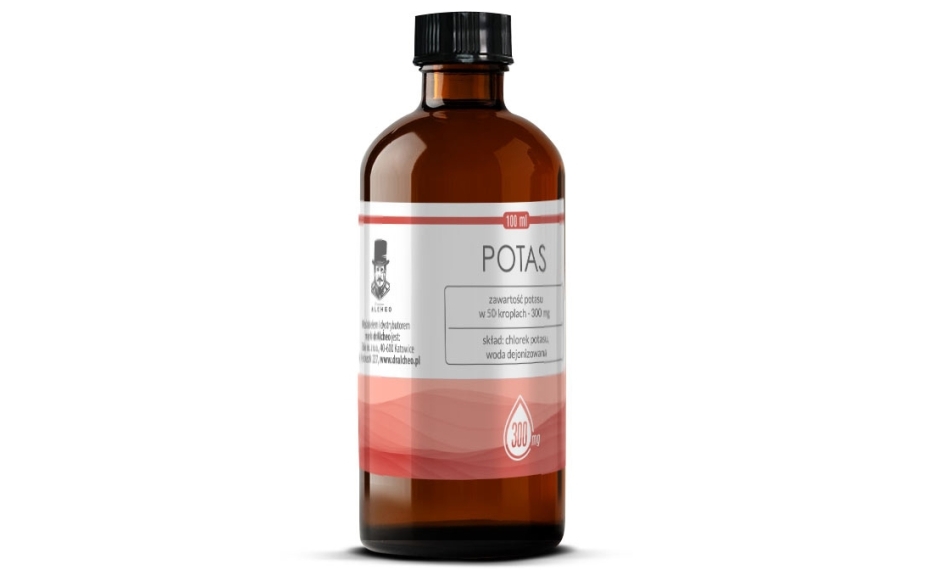 Każda porcja 50 kropli produktu dostarcza 300 mg potasu