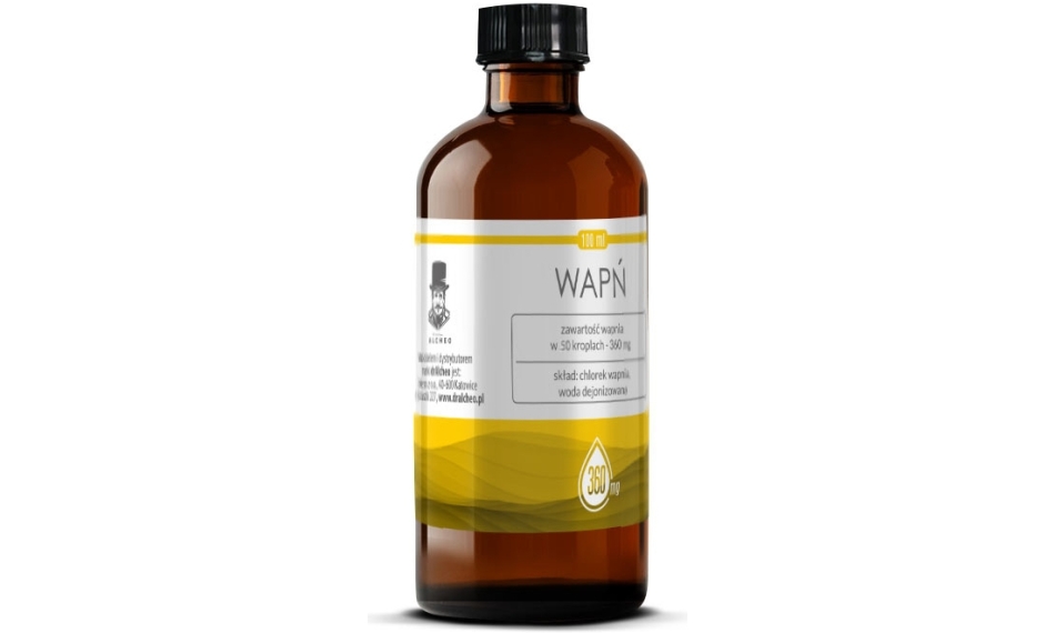 Każda porcja 50 kropli produktu dostarcza 360 mg wapnia.