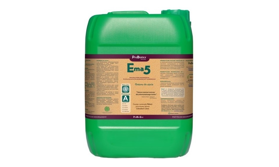 Ema5™ to specjalnie przygotowana kompozycja mikroorganizmów na bazie SCD ProBio Original® poddana dodatkowej fermentacji z octem winnym i alkoholem, charakteryzująca się silnym działaniem w ograniczaniu lub eliminowaniu patogenów grzybowych oraz niektórych szkodników.