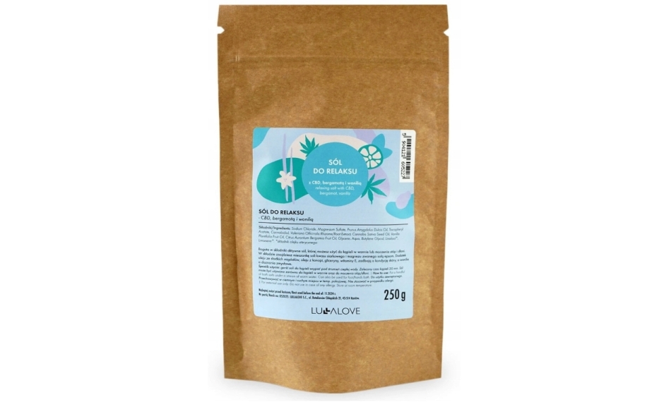 Sodium Chloride, Magnesium Sulfate, Prunus Amygdalus Dulcis Oil, Tocopheryl Acetate, Cannabidiol, Valeriana Officinalis Rhizome/Root Extract, Cannabis Sativa Seed Oil, Vanilla Plantifolia Fruit Oil, Citrus Aurantium Bergamia Fruit Oil, Glycerin, Aqua, Butylene Glycol, Linalool*, Limonene* *naturalny składnik olejku eterycznego.