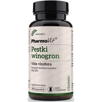Pestki winogron zawierają duże ilości aktywnych związków, zwanych oligomerycznymi proantocyjanidynami (OPC). Proantocyjanidyny pochodzące z pestek winogron wykazują działanie przeciwutleniające. Ekstrakt z pestek winogron wspiera zdrowie układu sercowo-naczyniowego oraz wspomaga krążenie żylne utrzymując zdrowie naczyń krwionośnych i integralność naczyń włosowatych.