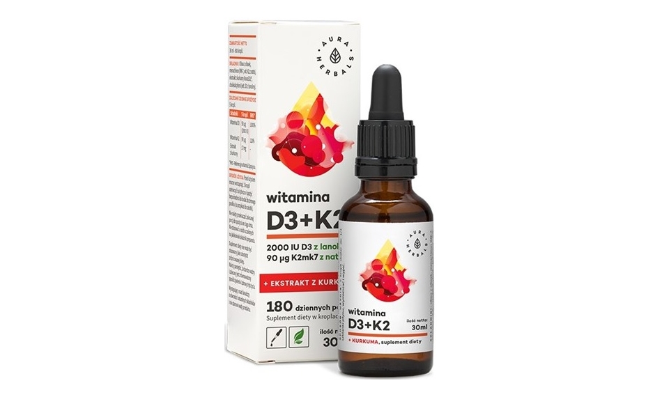 Aura Herbals Witamina D3 2000IU + K2 + Ekstrakt z kurkumy krople 30ml opinie