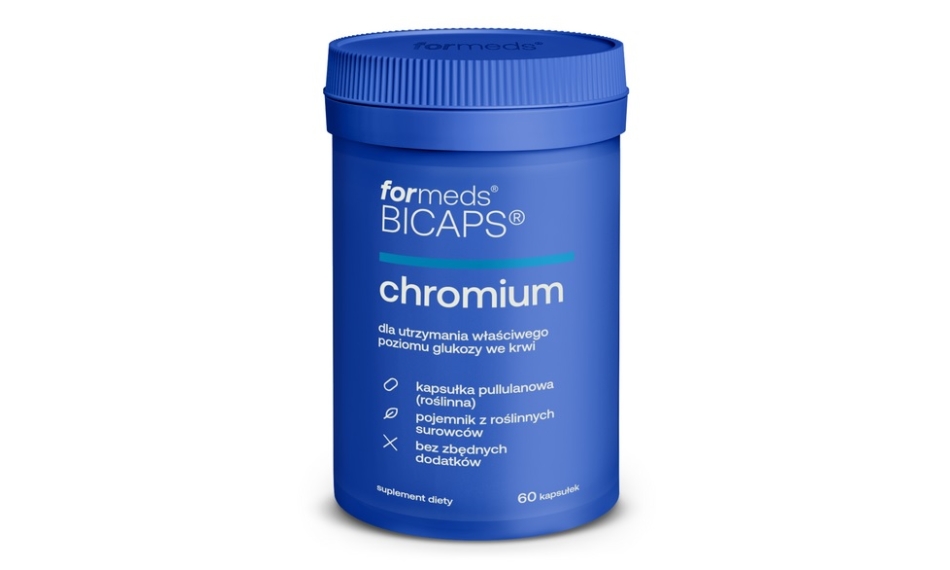 Chrom wpływa na utrzymanie prawidłowego poziomu glukozy we krwi oraz metabolizmu makroskładników odżywczych.
