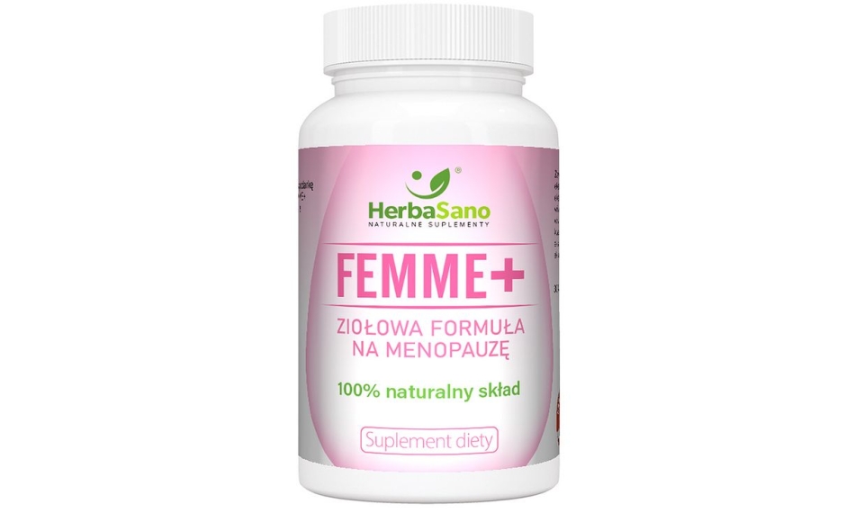Suplement diety FEMME+ zawiera ekstrakty ziołowe, które korzystnie wpływają na zdrowie kobiety podczas menopauzy: mają pozytywny wpływ na gospodarkę hormonalną kobiety w czasie menopauzy (len zwyczajny) oraz łagodzą nieprzyjemne dolegliwości związane z menopauzą jak uderzenia gorąca, nadmierna potliwość, niepokój (koniczyna czerwona, chmiel zwyczajny).